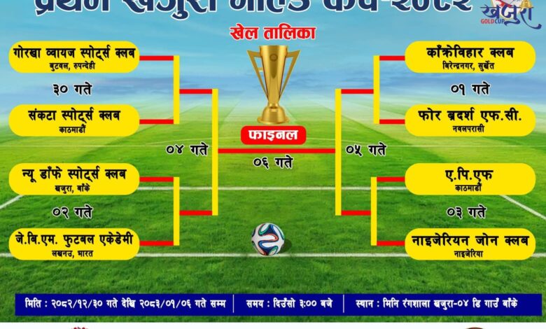 खजुरामा पहिलोपटक गोल्डकप : सात लाख पुरस्कार रहेको फुटबल प्रतियोगिता चैत ३० बाट सुरु, नाइजेरियादेखि भारतसम्मका टोली सहभागी