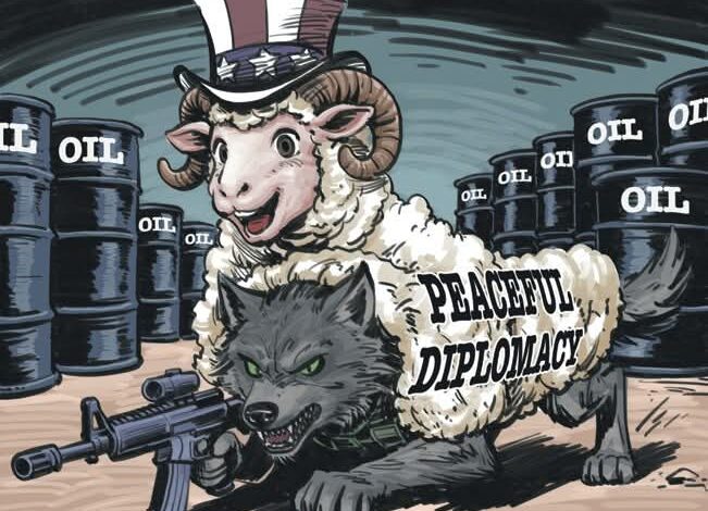 Kathmandu, March 3 — Chinese media have exposed US policies in the Middle East through a satirical cartoon. Titled “A Wolf in Sheep’s Clothing,” the cartoon sharply critiques America’s greed for control over Middle Eastern oil and its tendency to cloak this pursuit in the guise of peaceful diplomacy.