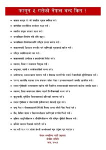 The party has also presented other reasons for the Nepal banda in bullet points. These demands include creating a people’s constitution, ending corruption and black-marketeering, creating employment opportunities to retain youths within the country, providing land to the landless, and making education, health, and transportation free of cost.