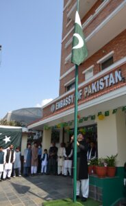 On the auspicious occasion of 85th National Day of Pakistan, a Flag Hoisting Ceremony was held at the Embassy of Pakistan, Kathmandu today. Ambassador H.E. Abrar H Hashmi hoisted Pakistan’s Flag. Messages from the President, Prime Minister and Foreign Minister were read out on the occasion.