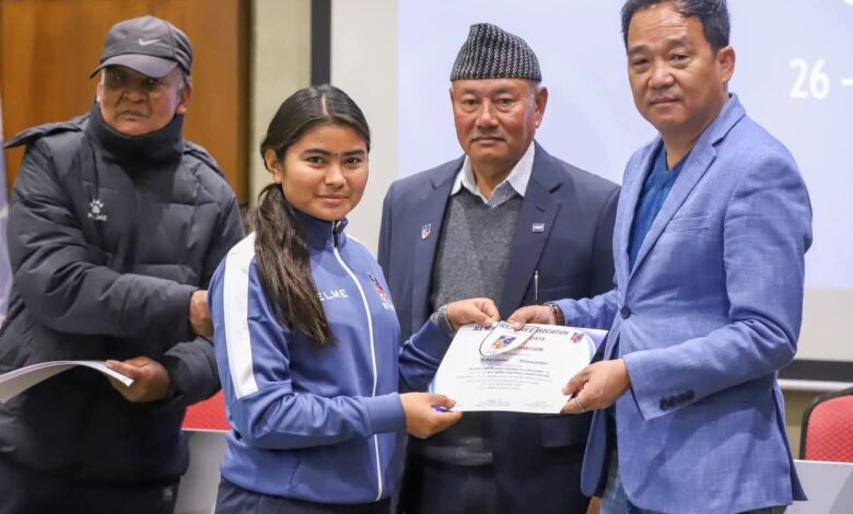 Nepalgunj / Mamata Rana Magar from Banke district has successfully passed the Category-4 football referee exam, achieving greater responsibility as a football referee. She had previously been serving as an ANFA (All Nepal Football Association) referee.
