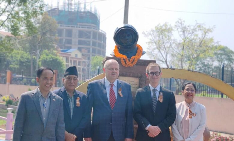 The bust of Yuri Gagarin was inaugurated on April 24, 2019, by the Mayor of Kathmandu, Mr. Bidhya Sundar Shakya, together with cosmonaut and two-time Hero of the Soviet Union, Mr. Viktor Savinykh.