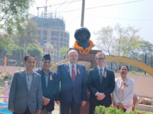 The bust of Yuri Gagarin was inaugurated on April 24, 2019, by the Mayor of Kathmandu, Mr. Bidhya Sundar Shakya, together with cosmonaut and two-time Hero of the Soviet Union, Mr. Viktor Savinykh.